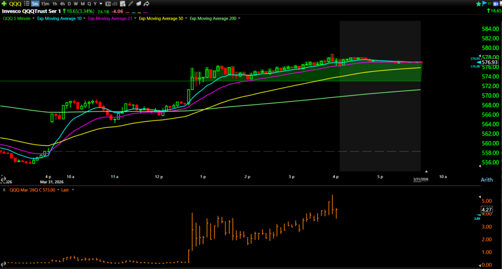 Look at the orange chart here, showing the QQQ 3/31 $573 calls intraday move: