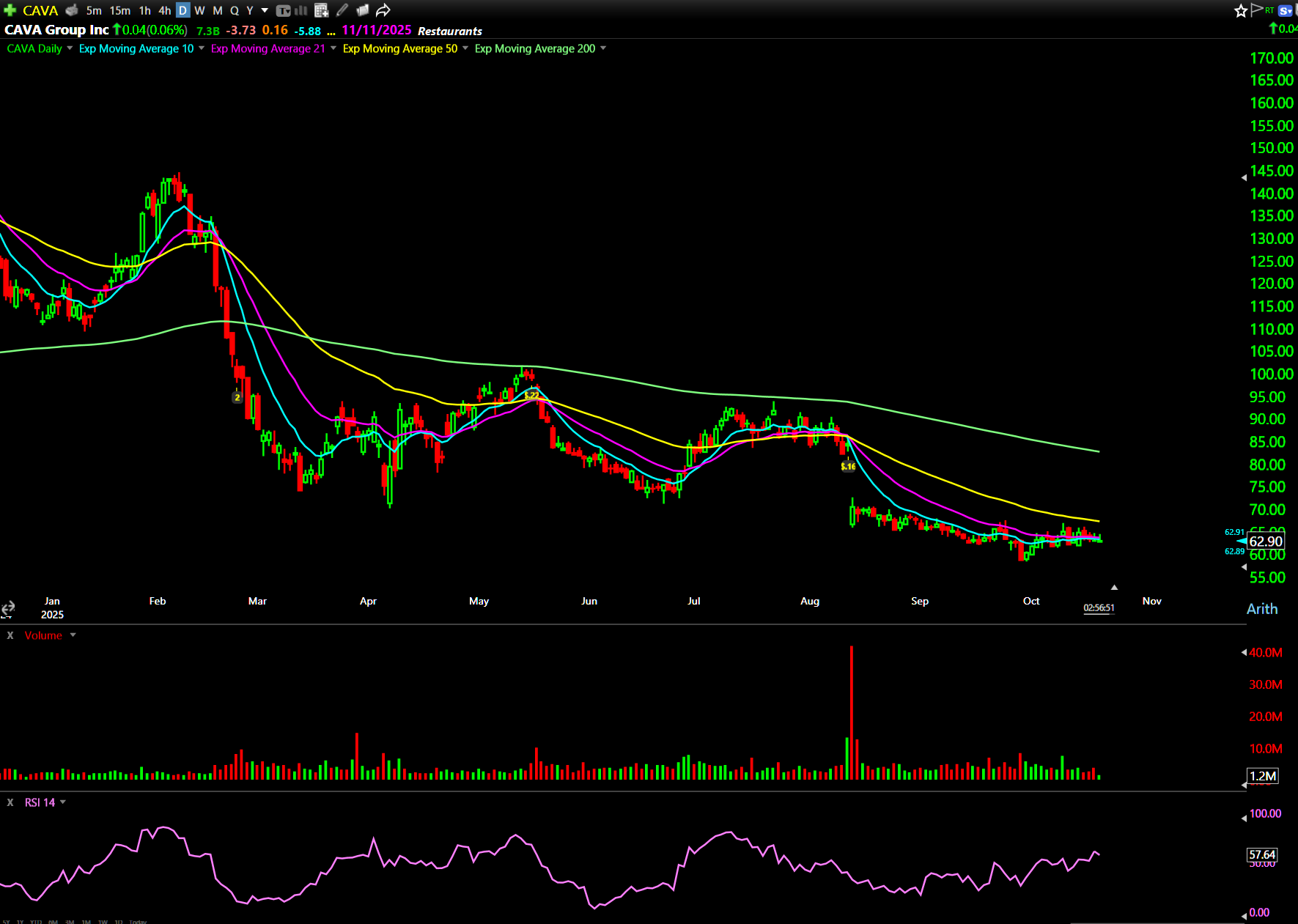 The chart’s consolidating with a nice, beautiful base forming between $60 and $62.
