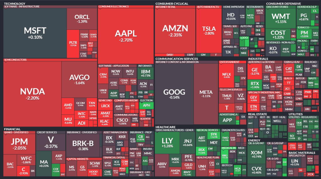 Big tech names like AAPL and GOOGL led the decline, which tells you this wasn’t just a few weak sectors … it was broad selling pressure.