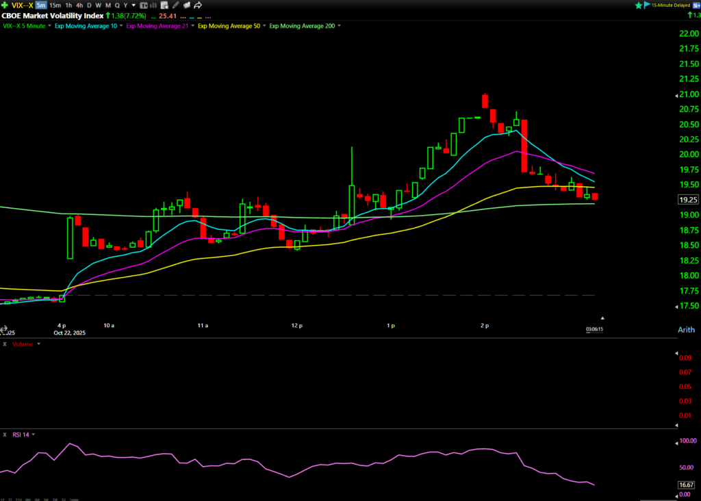 VIX chart: October 22, 5-minute candles — courtesy of TC2000