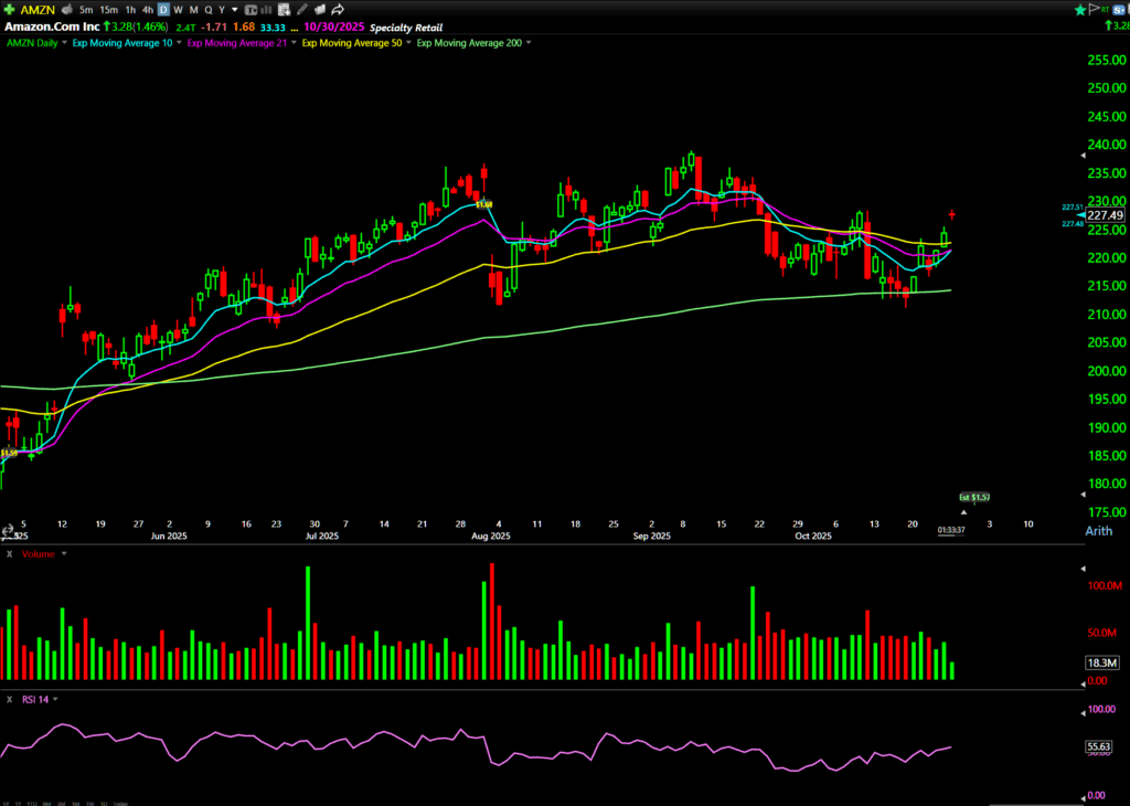 Long-term bullish setup. I’ve been in AMZN since the $200-$211 range, and it’s setting up for a Stage 2 breakout. If AMZN breaks above $229, it confirms the next leg higher. I’m watching the January 16 $265 Calls and already holding May $260 Calls.