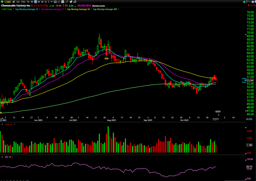 A massive $1 million Smart Money bet came in on CAKE … right before earnings. Coincidence? Likely not. This is a classic “three times a lady” setup. Watch for a breakout above $57.50 for the November 21 $60 Calls.