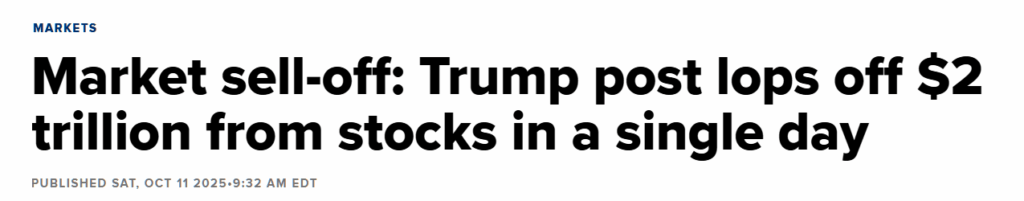 One Truth Social post from President Trump (since deleted) triggered the cascade lower: