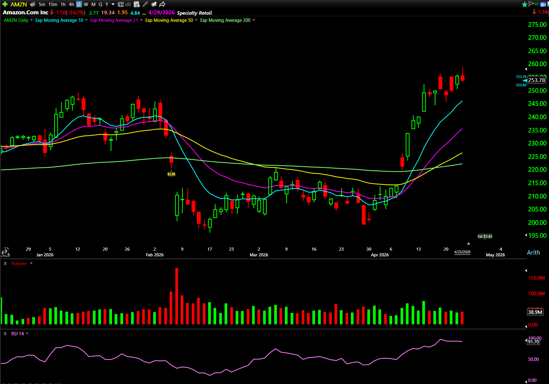 AMZN chart: Year-to-date, daily candles (courtesy of TC2000)