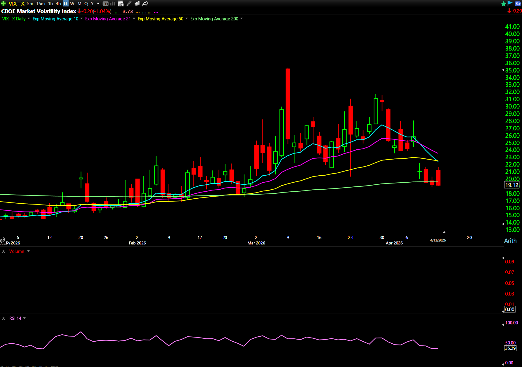 VIX chart: Year-to-date, daily candles (courtesy of TC2000)
