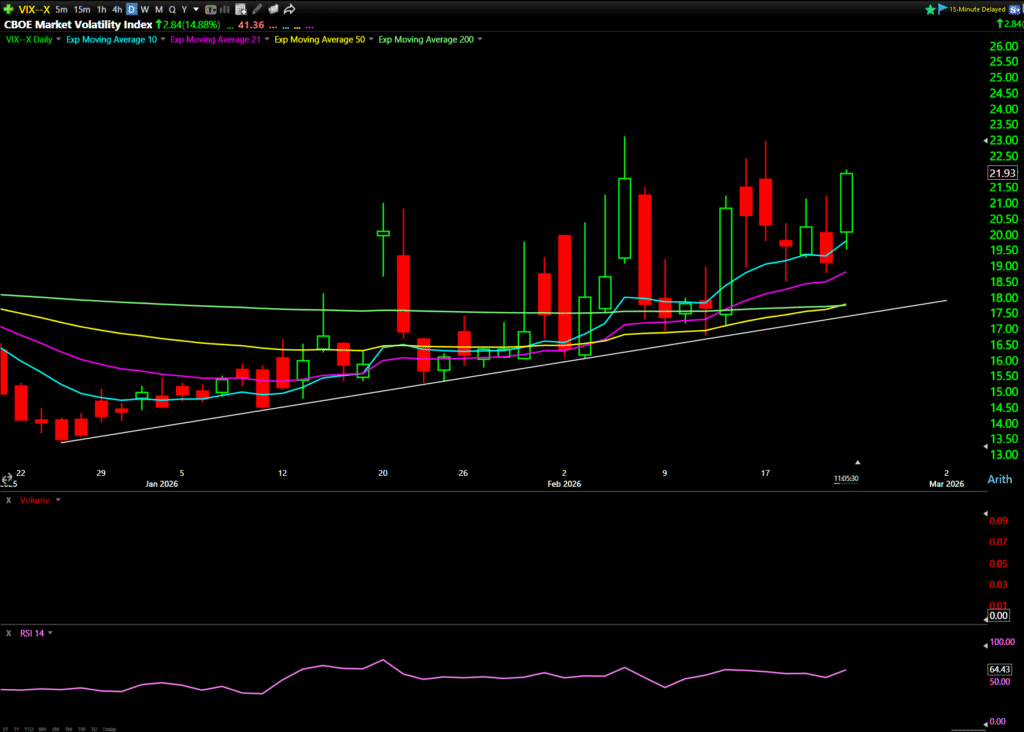 I’m talking about the CBOE Volatility Index (VIX), which spiked above 20 yesterday.