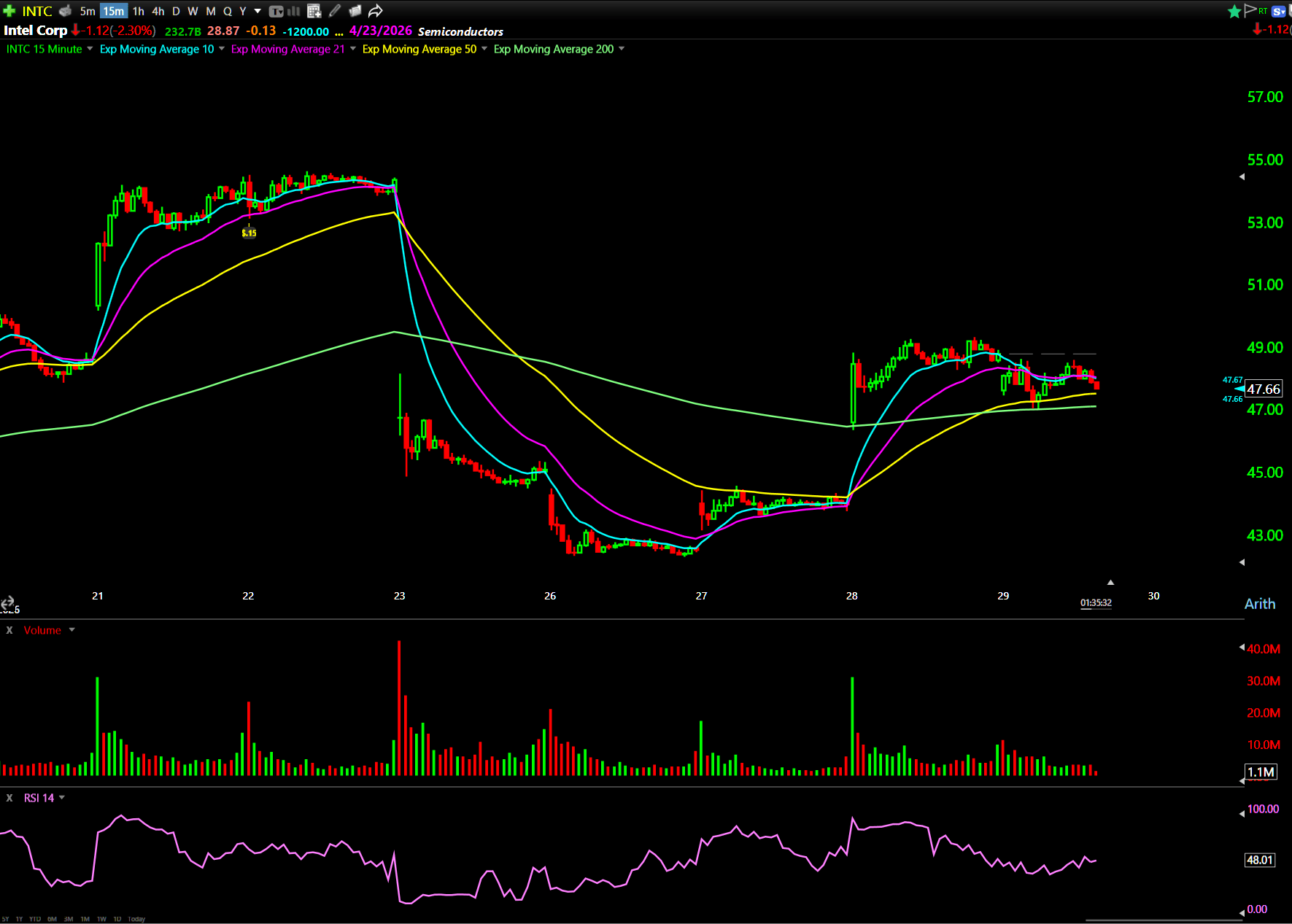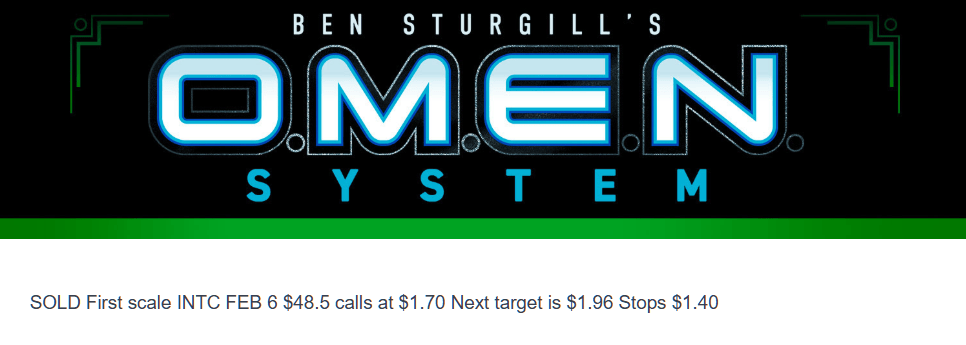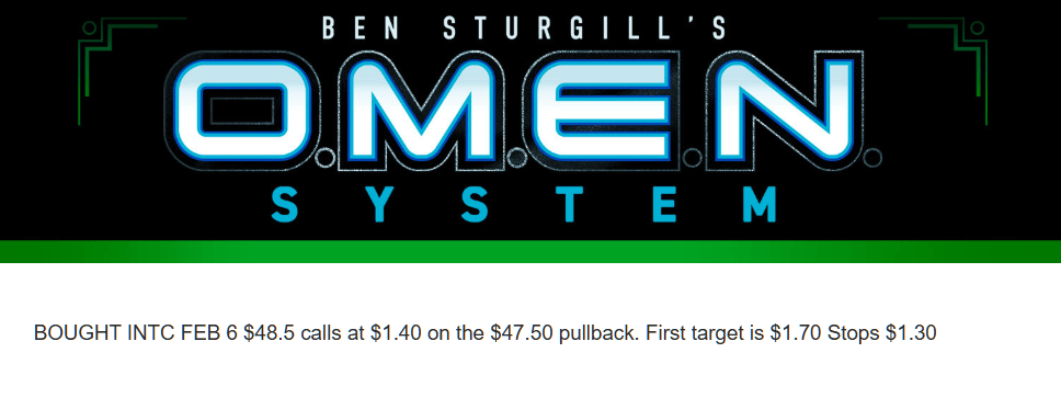 But the stock had been extended. I was waiting for a pullback, and I got it on January 23. The selling pressure finally brought INTC down to a level where I could start considering an entry.