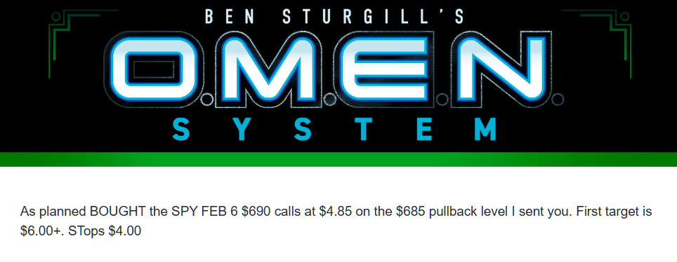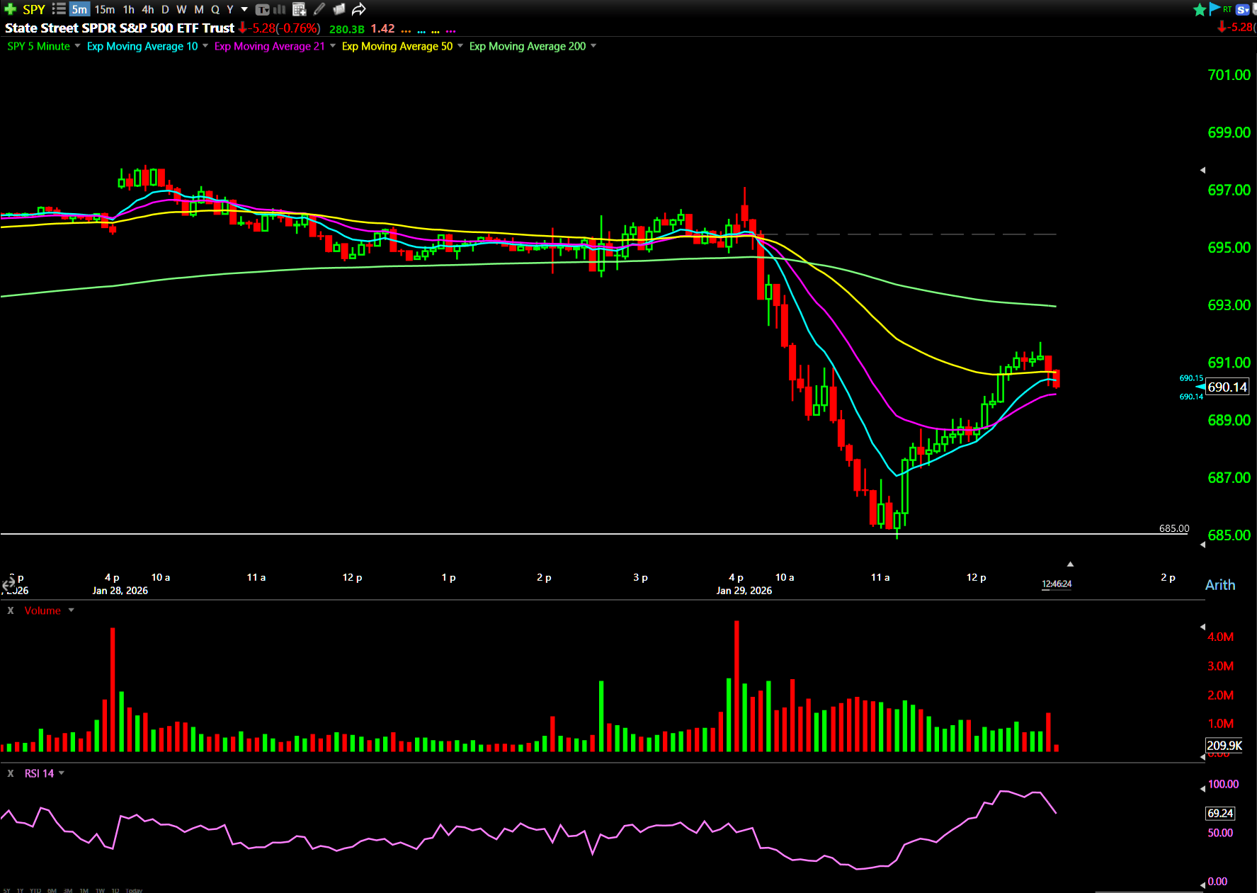 I bought SPY Feb 6 $690 Calls with a 20% stop-loss, positioning for a snapback into next week: