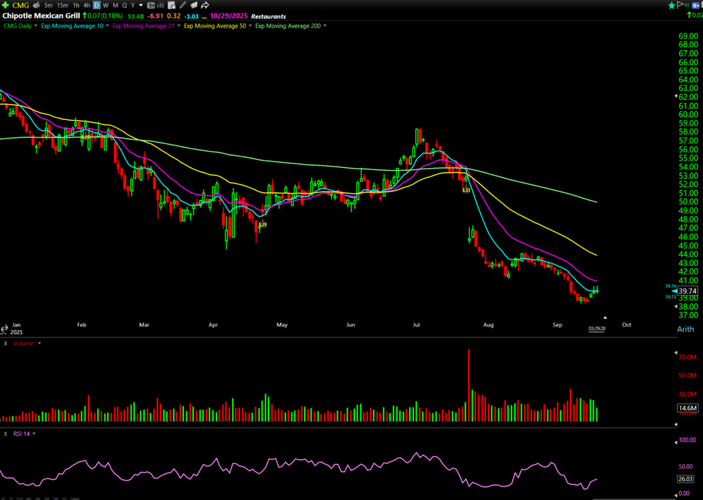 But more importantly, we’re seeing massive call option volume come in. Open interest went from 32 to 5,000. Above $40, I like the October 31 $42 Calls.