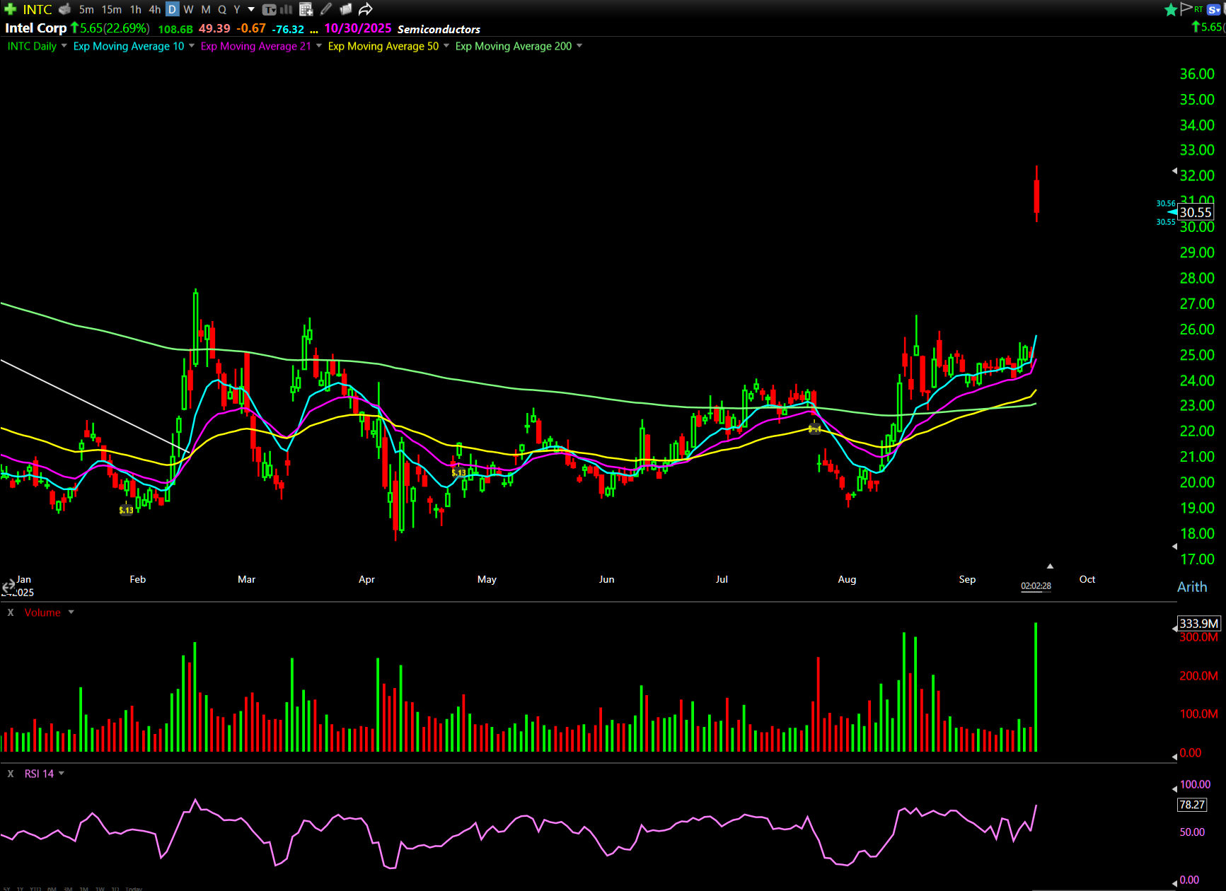 Following this headline, INTC jumped as much as 29% intraday: