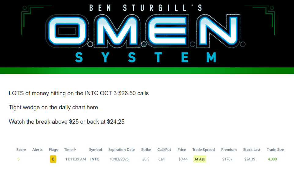 Then I sent you the Smart Money trade: the October 3 $26.50 Calls.