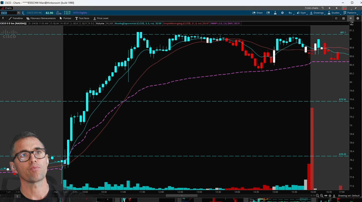 A textbook VWAP pullback on Cisco Systems Inc. (NASDAQ: CSCO) that ran in the morning, rested all afternoon, and continued higher the next day.