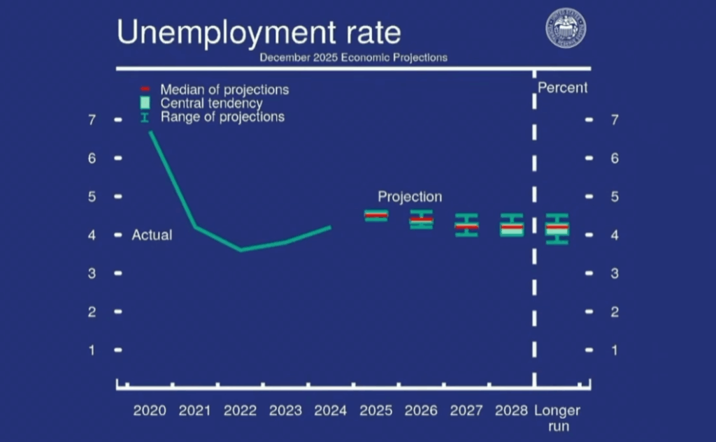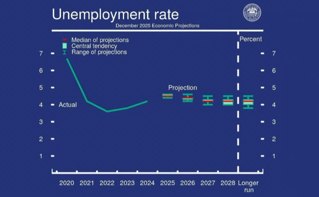 - SEP projects unemployment at 4.5% by year-end, then slightly lower thereafter.
