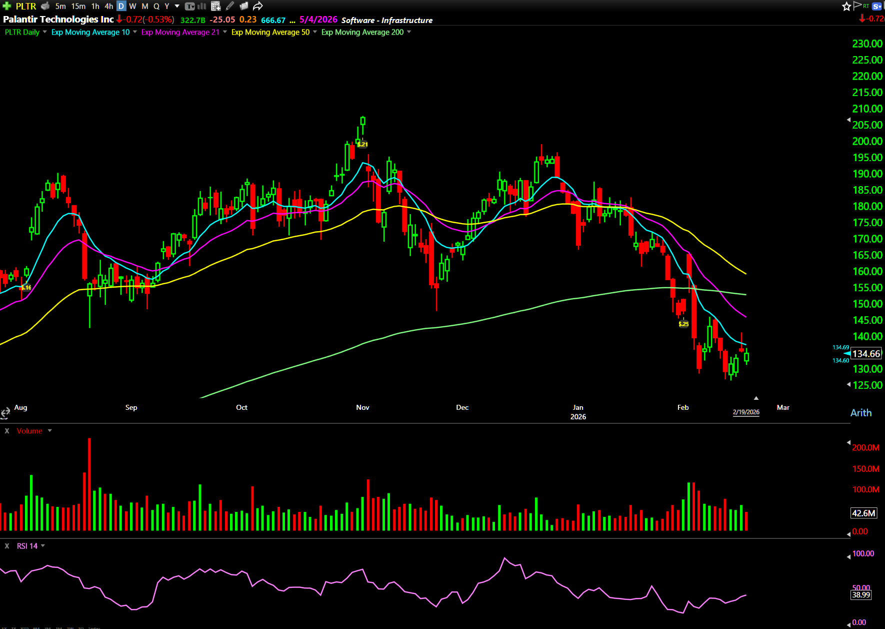 Alert at $136.50 for the Feb 27 $145 calls. If this thing can recapture $136, I like it. The stock bounced. The calls moved. Done.