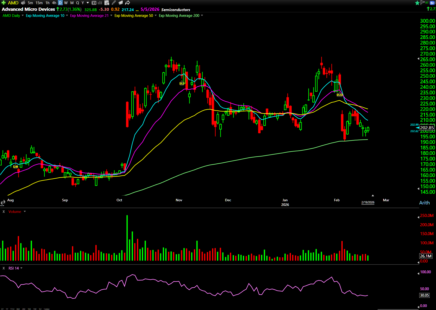 AMD pulled back into a previous resistance zone that’s now support. Long-term, weekly chart, just with shares… I like AMD. I think it’s a nice pullback zone personally.
