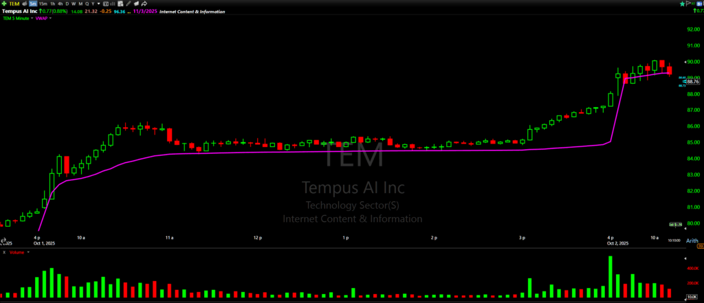 The traders who joined me live got the full plan before risking a dime. They watched TEM hold VWAP for hours, coiling tighter and tighter, until it finally broke with conviction exactly as we anticipated.