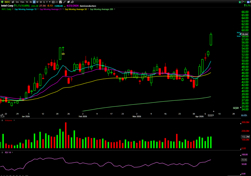- INTC. Best setup. Trend plus strength plus VWAP plus scanner. Highest probability.