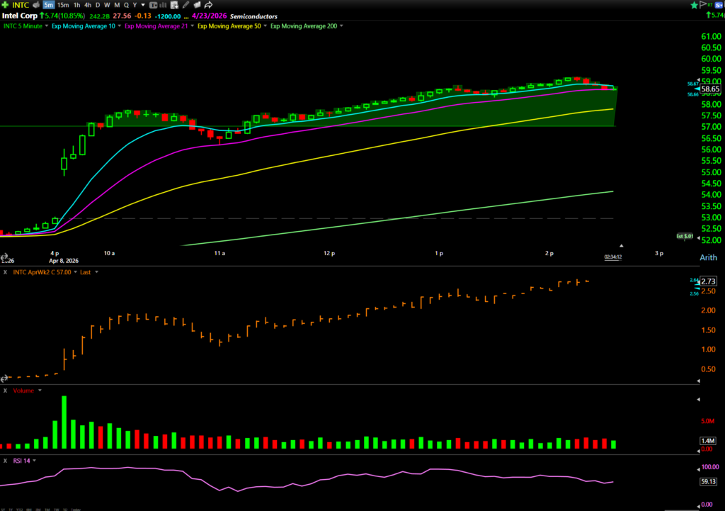 Smart Money volume was on the INTC April 10 $57 calls.