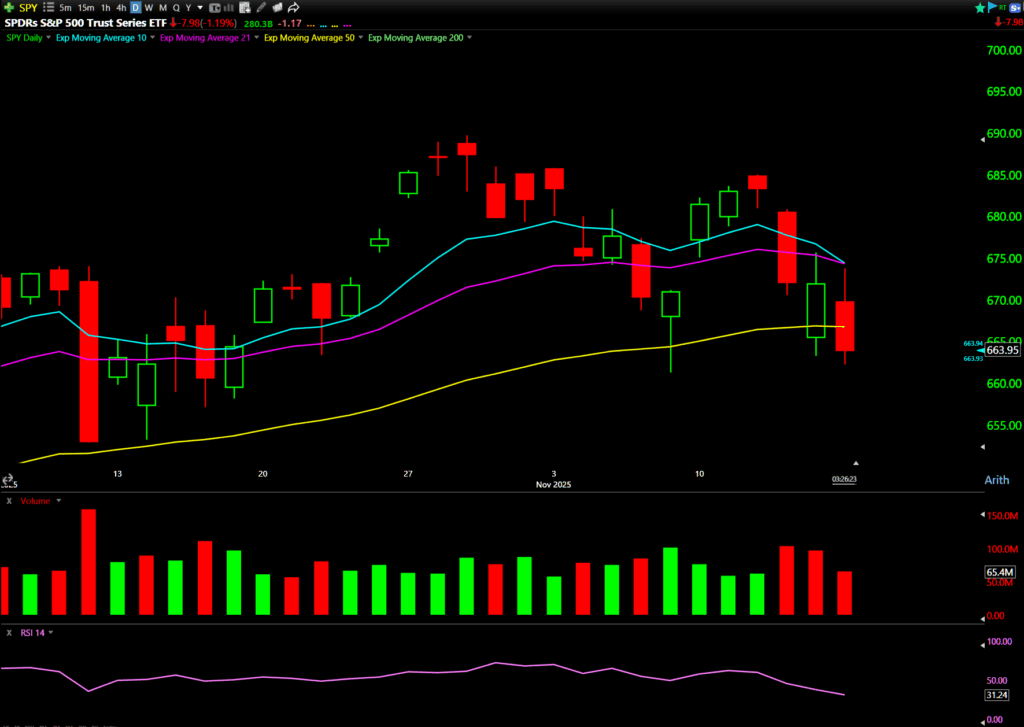 The VIX is sitting above 21. Market internals look weak. And the SPDR S&P 500 ETF Trust (NYSE: SPY) has been mired in chop since October 10.