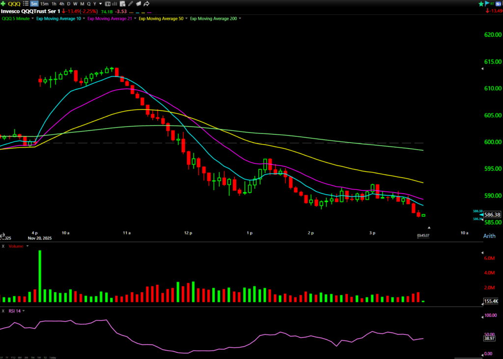 In a murderous rug pull, the Invesco QQQ Trust (NASDAQ: QQQ) dropped 3% in 90 minutes.