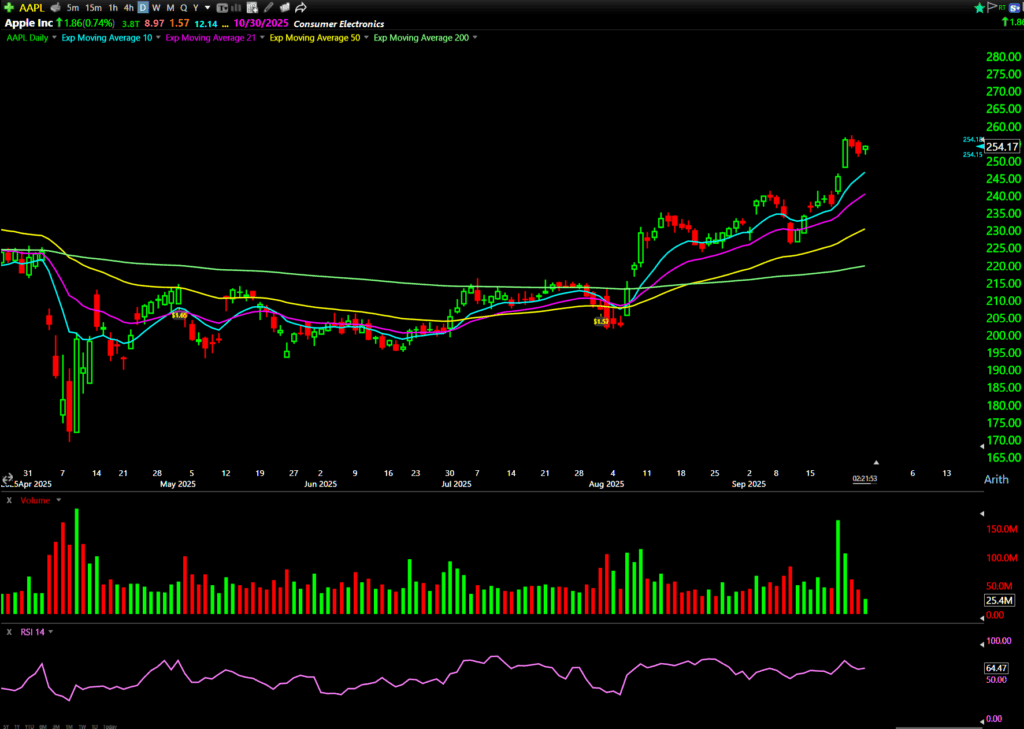 Apple’s holding strong despite market weakness, making it a relative outperformer.