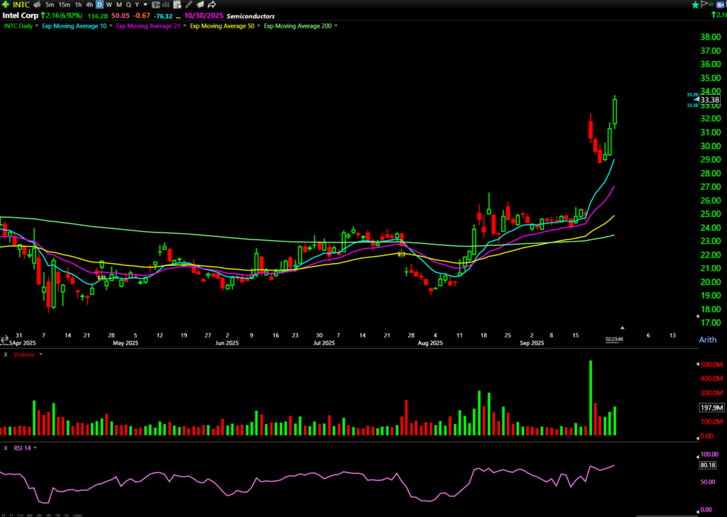 I’m currently holding November $34 Calls, October 3 $30 Calls, and October 10 $32 Calls.