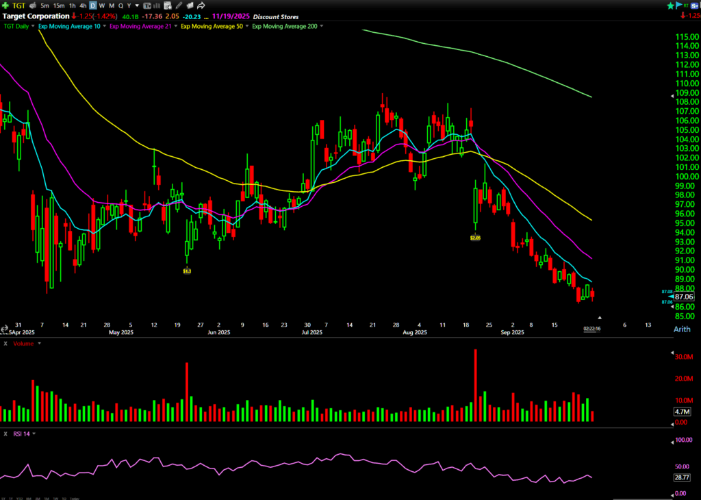 Support around $77, better support at $75. Breakout play above $80 for October 17 $85 Calls.