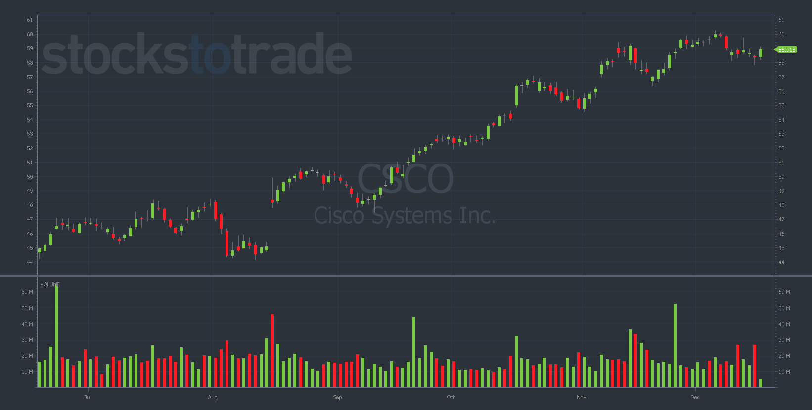 EXAMPLE: I just closed out a trade on Cisco Systems Inc. (NASDAQ: CSCO) 12/20/24 $57.50 Calls that I bought at $1.38 and sold at $2.17 for an easy, simple, 57% gain.*