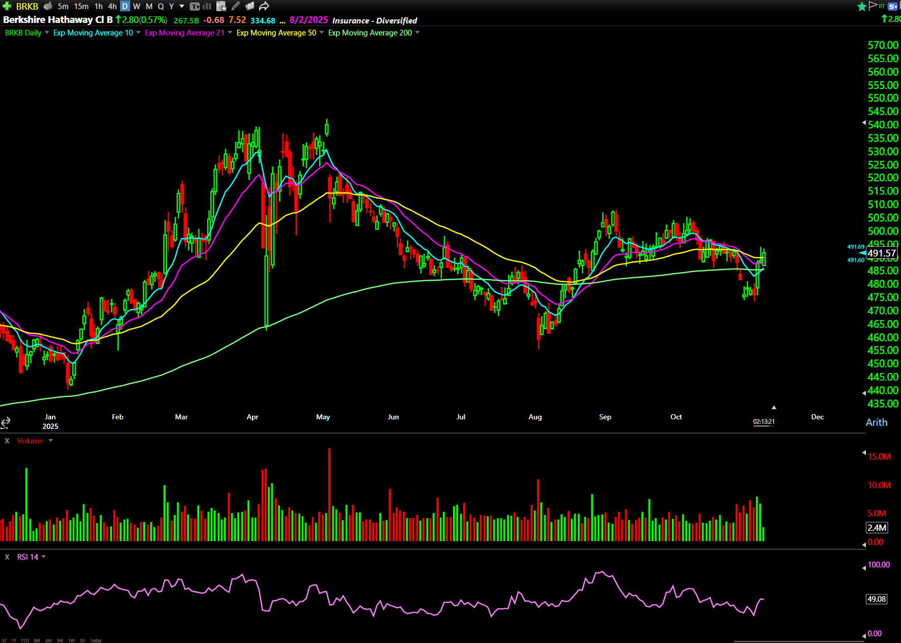 Buffett & Co. chart has a serious accumulation pattern forming. I’m interested in December 5 $505 Calls if BRK.B continues building.