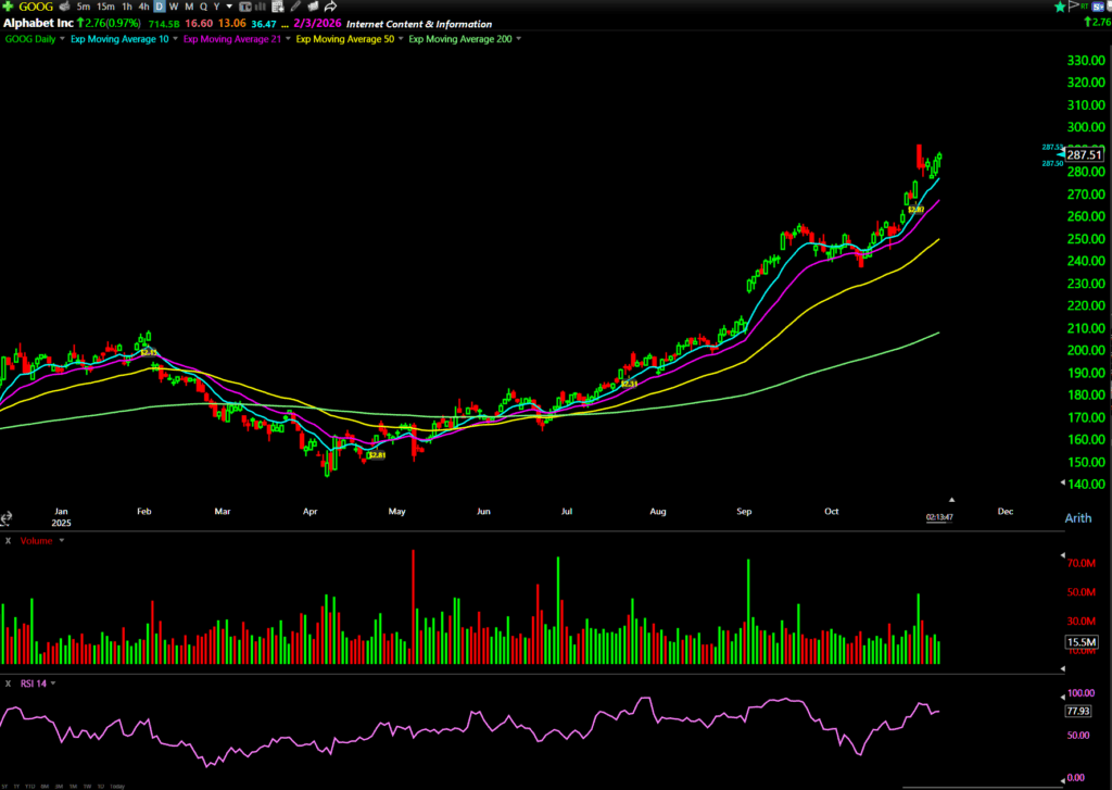 GOOG is one of the strongest tech stocks right now. Watching for a move above $290 for December 12 $300 Calls.