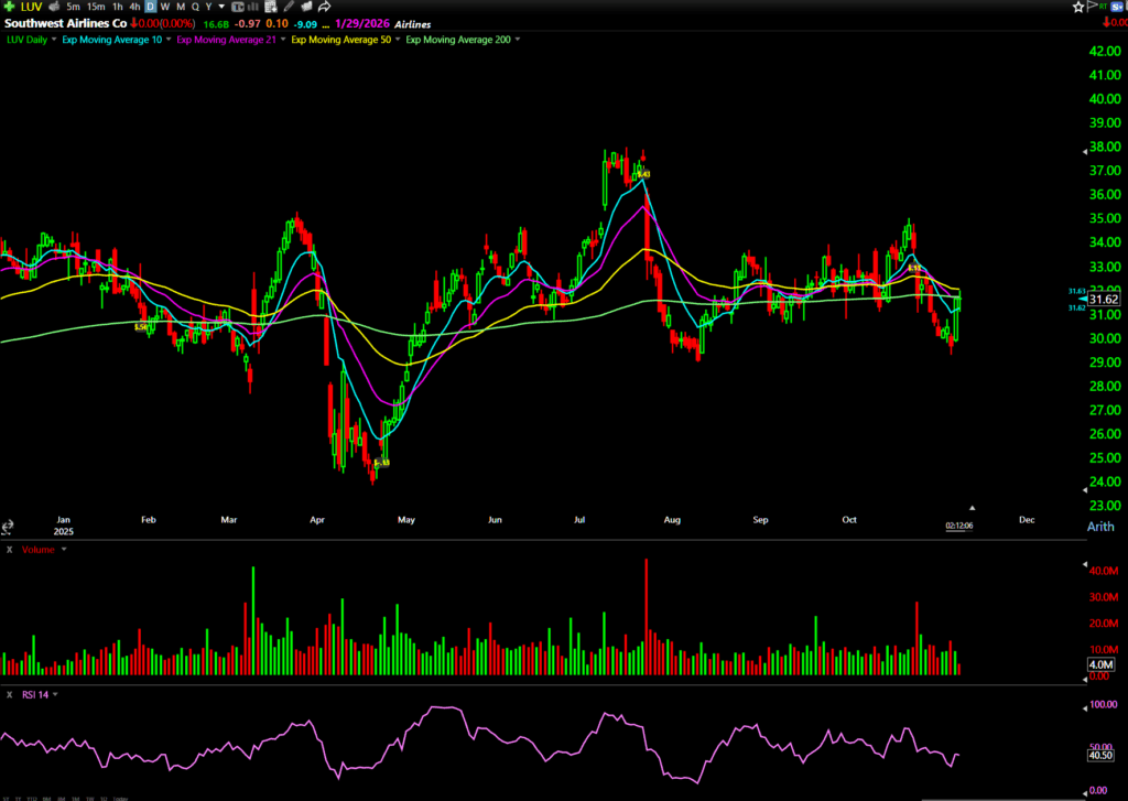 Watching for a move above $31.70. If LUV breaks that level, I’m targeting November 21 $33 Calls.