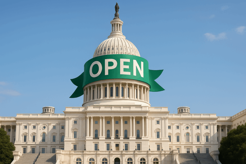 When the government reopens, federal spending resumes. Contractors get paid. Agencies place orders. Money flows back into the economy.