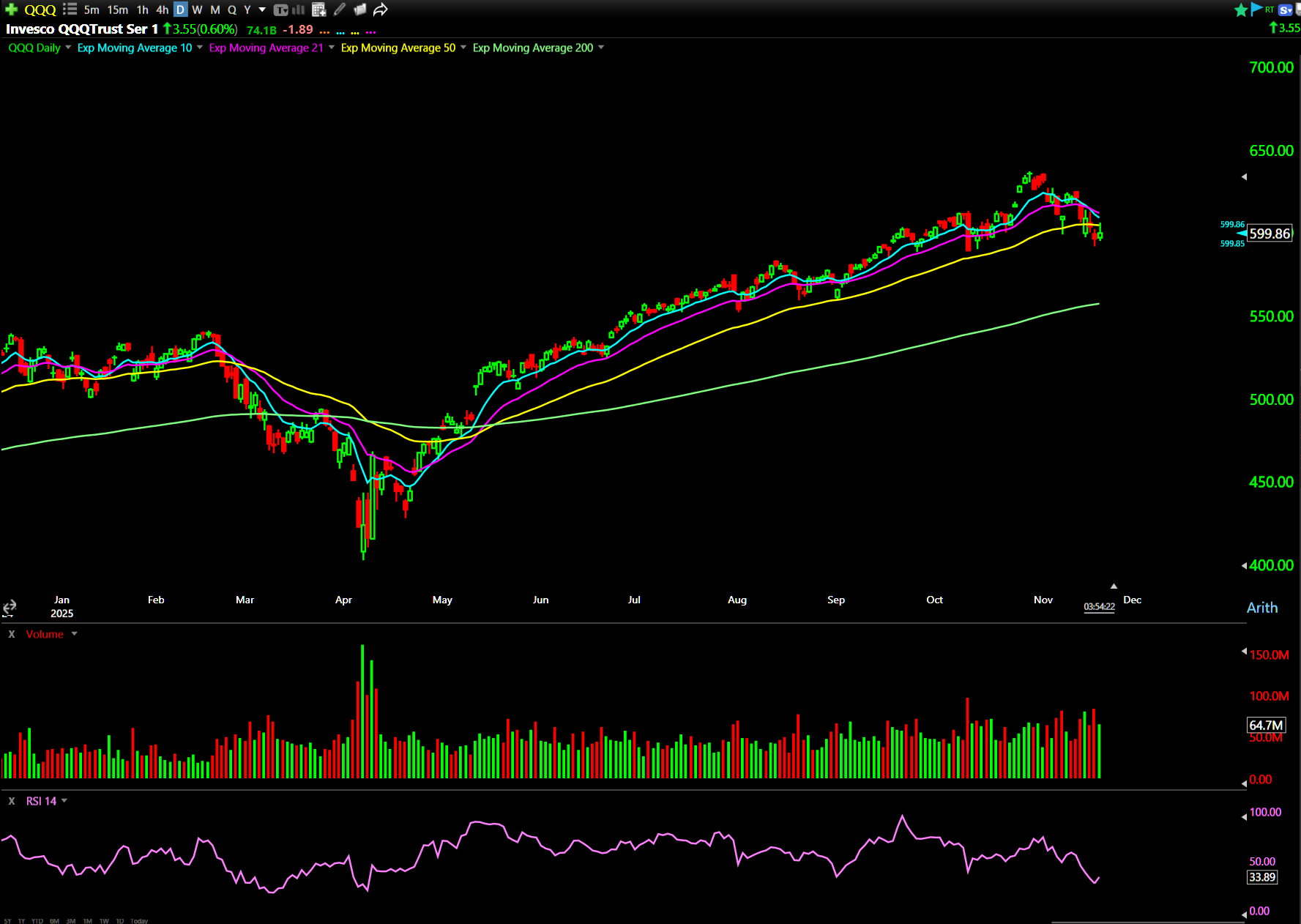 QQQ will lead every other name in the market. If it can’t reclaim $600, we’re still in shaky territory.
