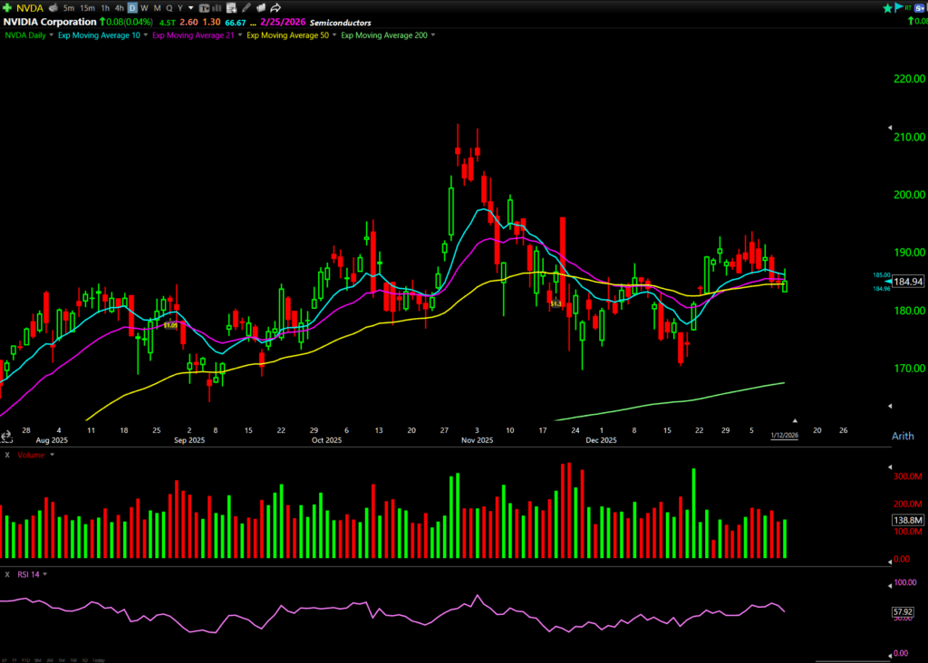NVDA chart: 6 months, daily candles — courtesy of TC2000