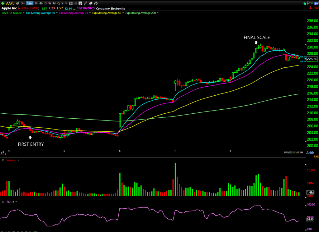- Second scale at $4.25 on 8/5 → +51.79%